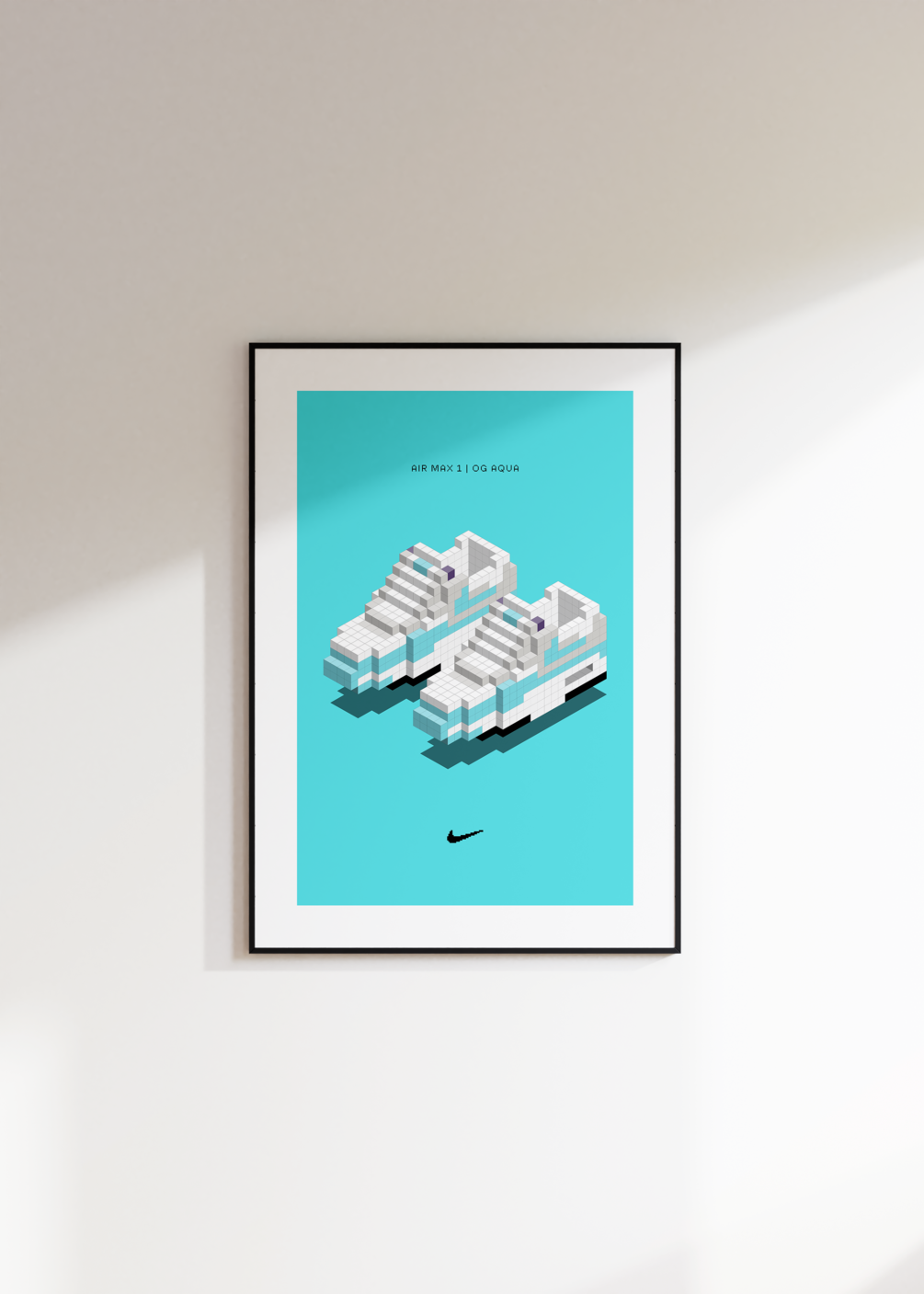 OG Aqua Pixel Sneaker Poster – Digital Art Print (5 Size Ratios Included)